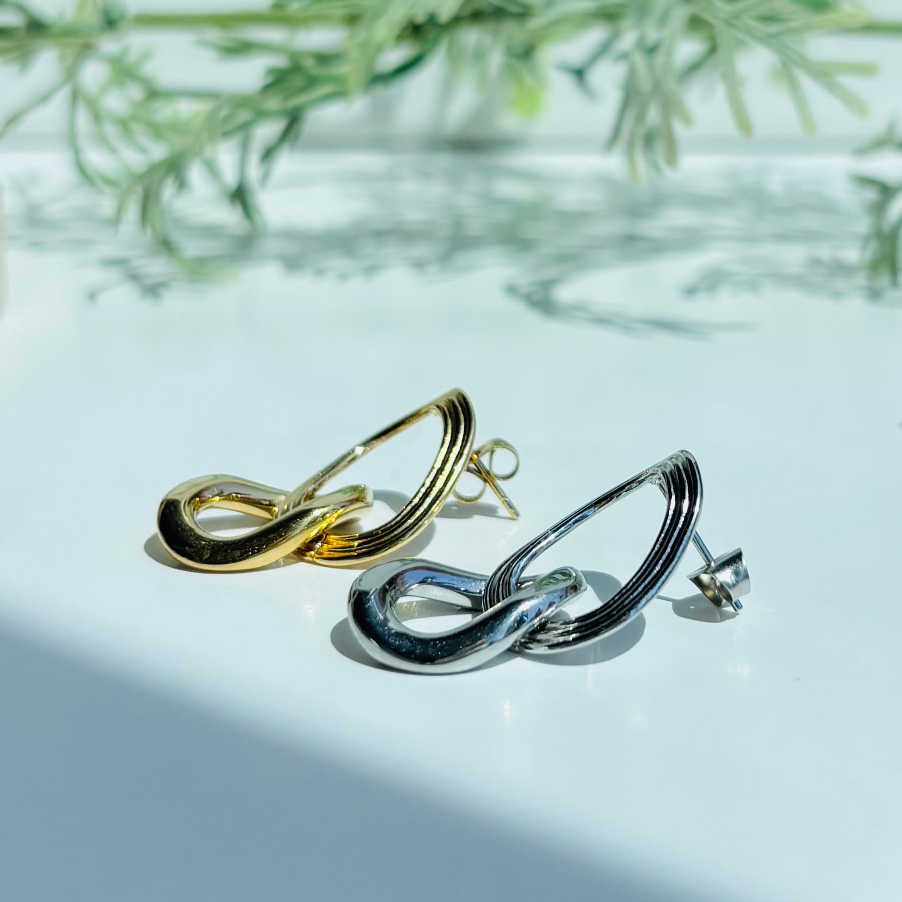 あえて歪ませた輪のデザインが、動くたびに揺れ、こなれた印象と遊び心をプラスします。