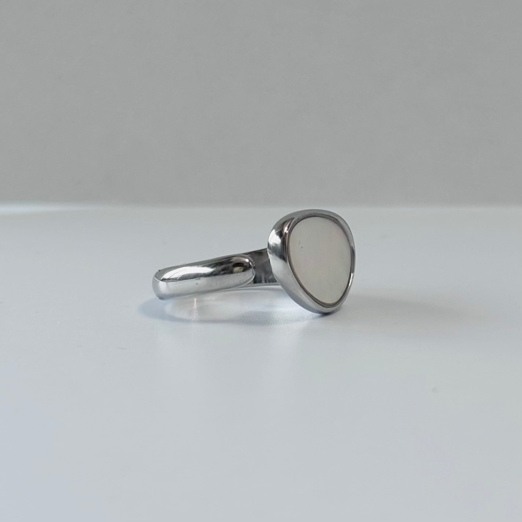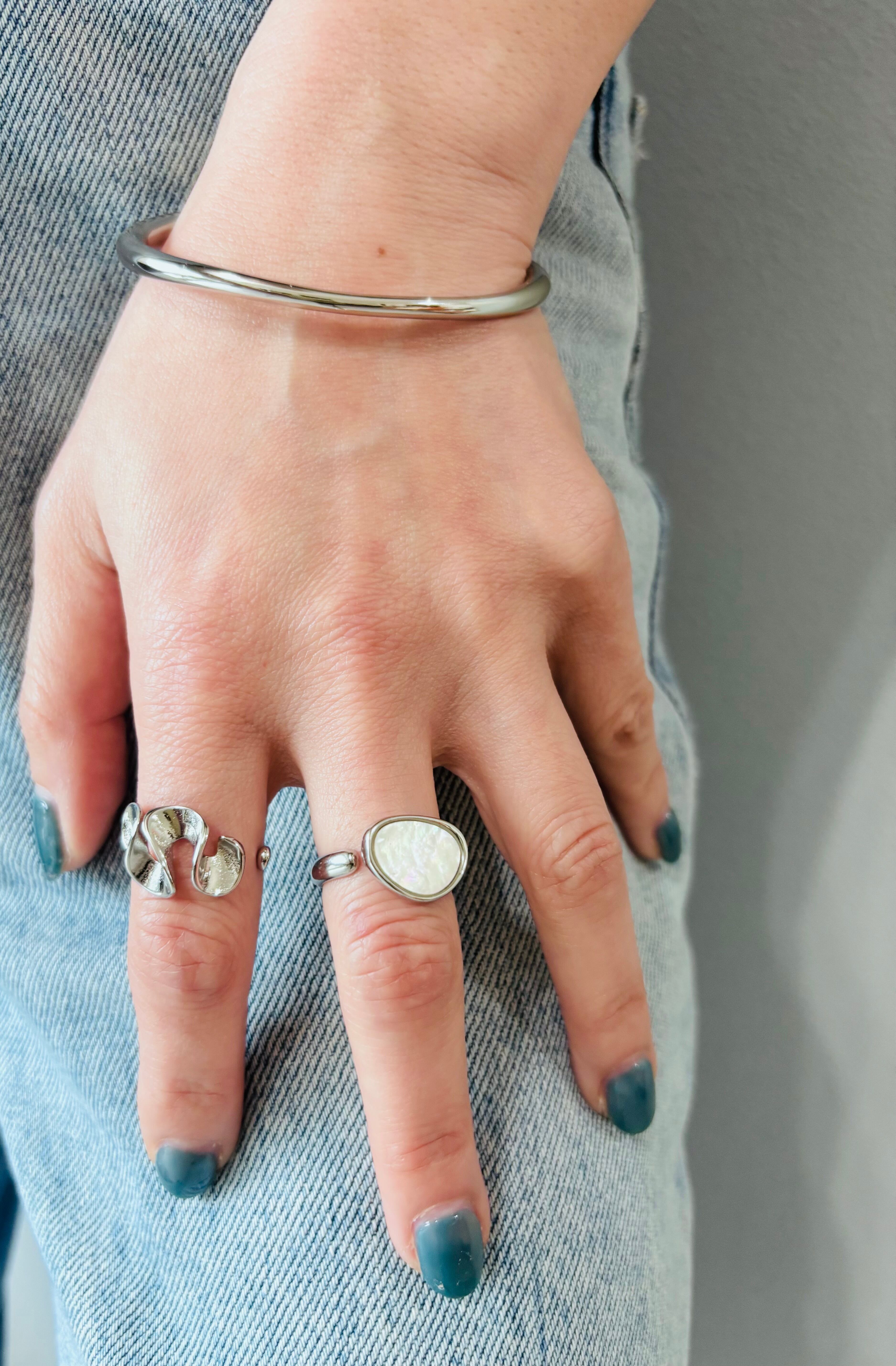 【シルバーカラー入荷!】オーバルシェルオープンリング【サイズ調整可能】