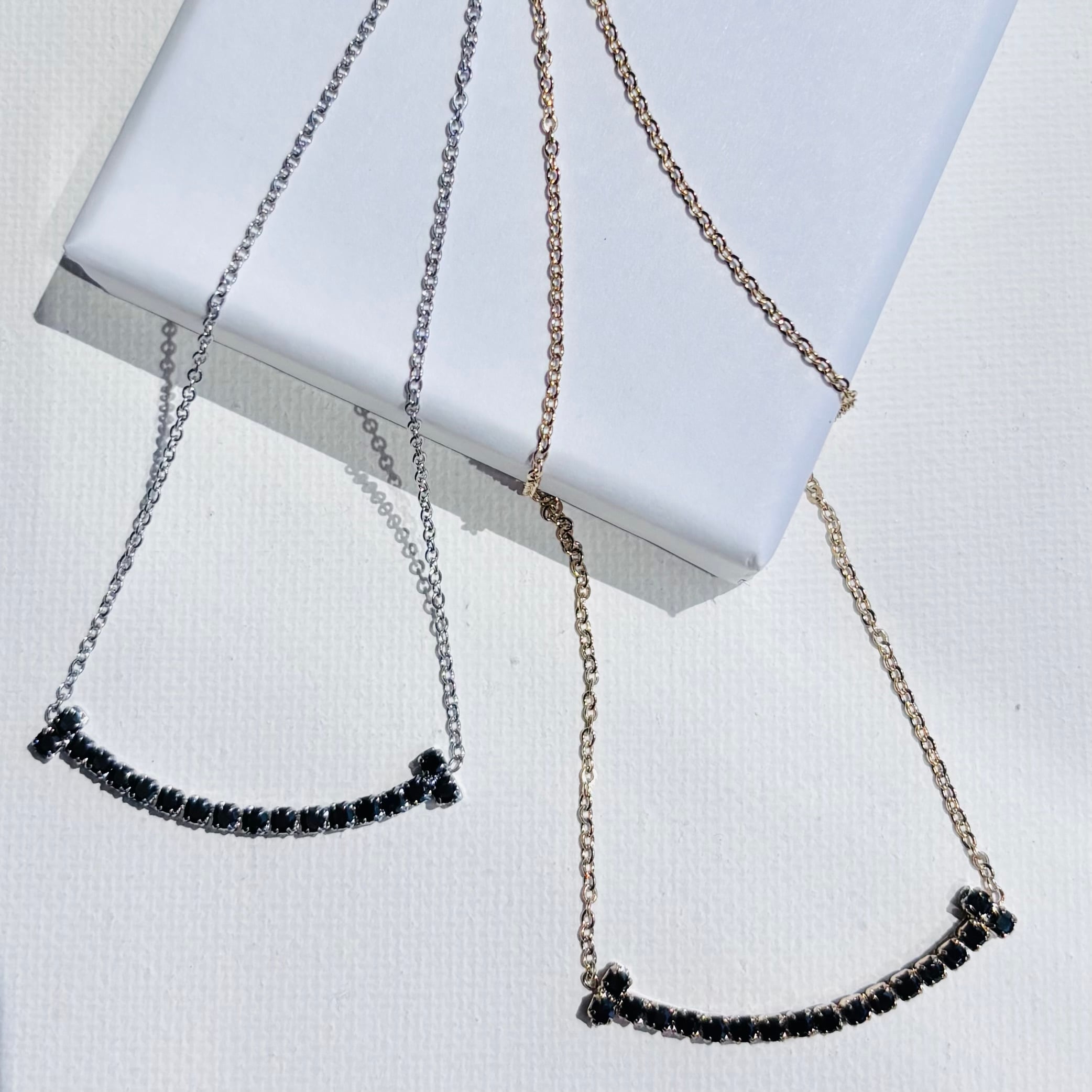 ブラックジルコニアが上品に輝く、大人のスマイルラインネックレス。
