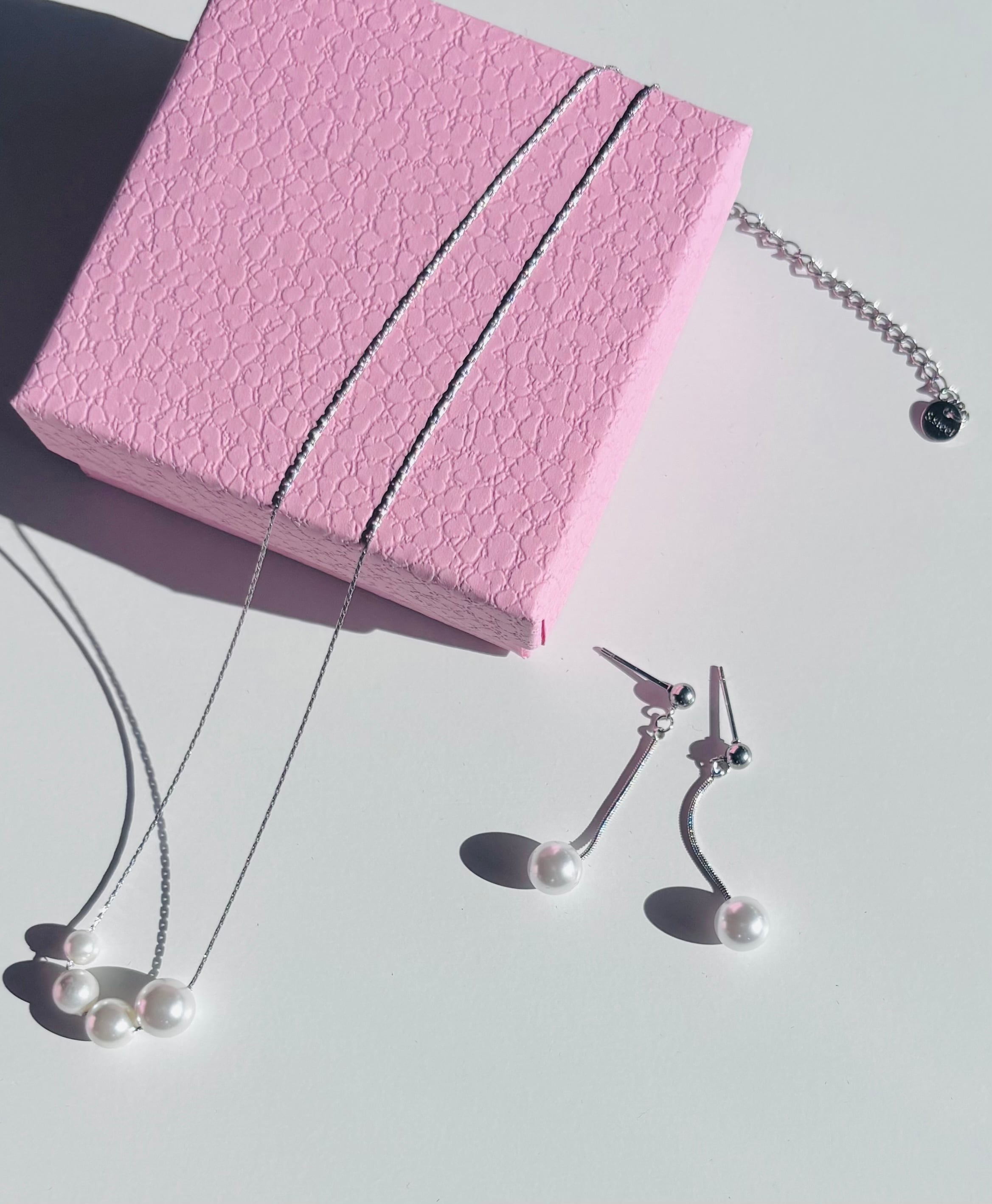 大きさの違う真ん丸のパールが4粒並んだネックレスの2点セットのWINTER BOX。
