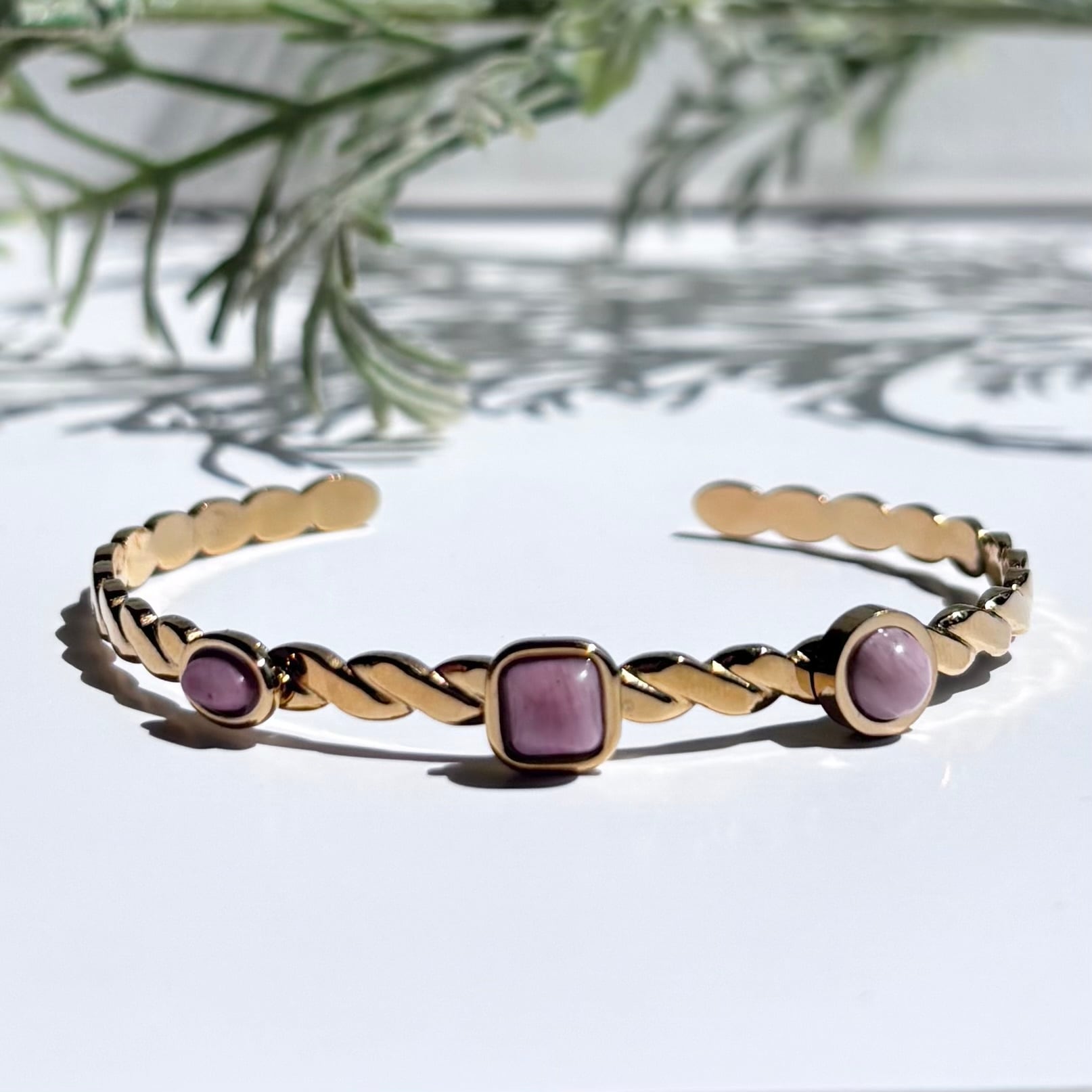 サイズ調整ができる、ねじりデザインが特徴的な、個性あふれるバングル。