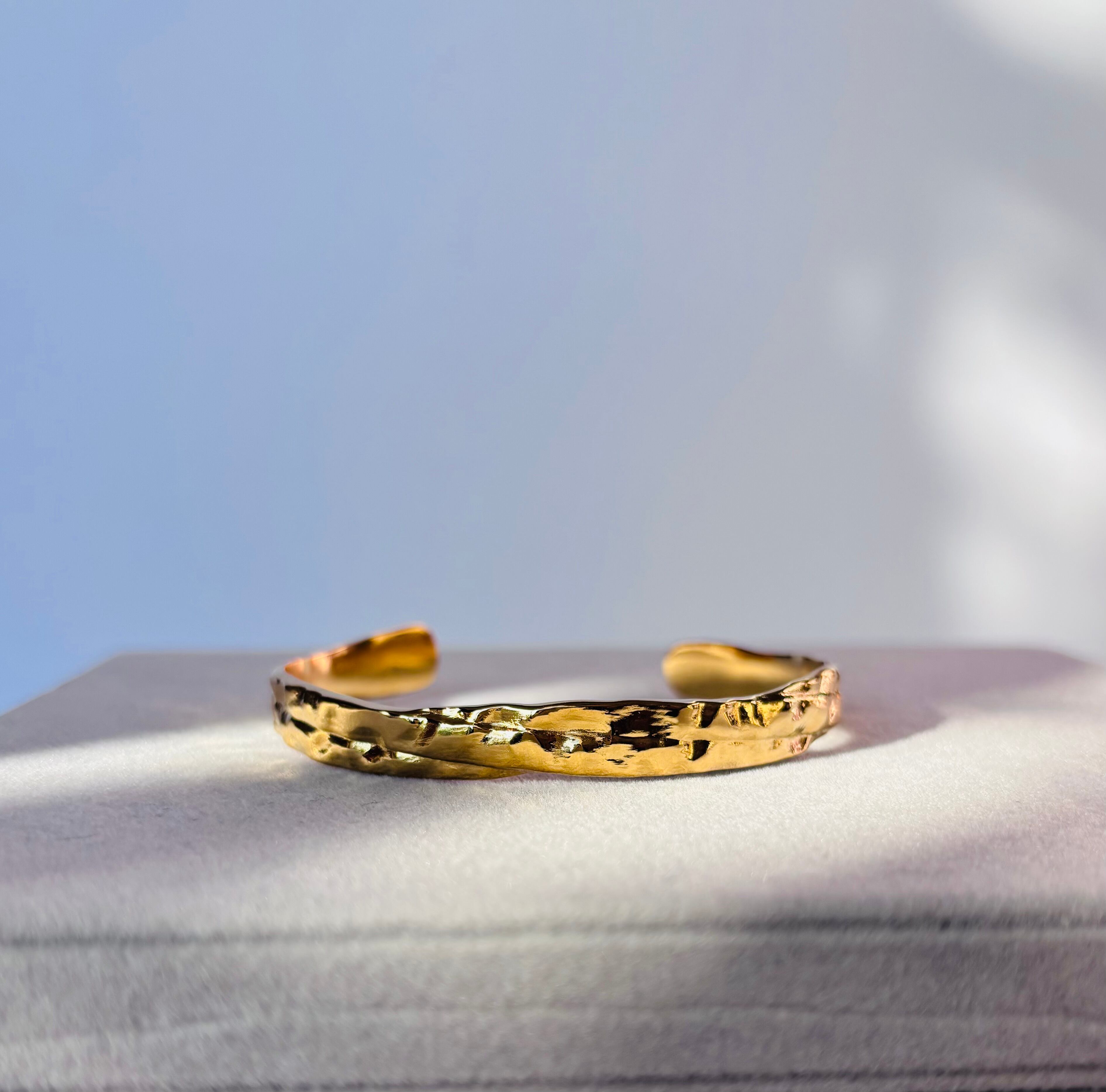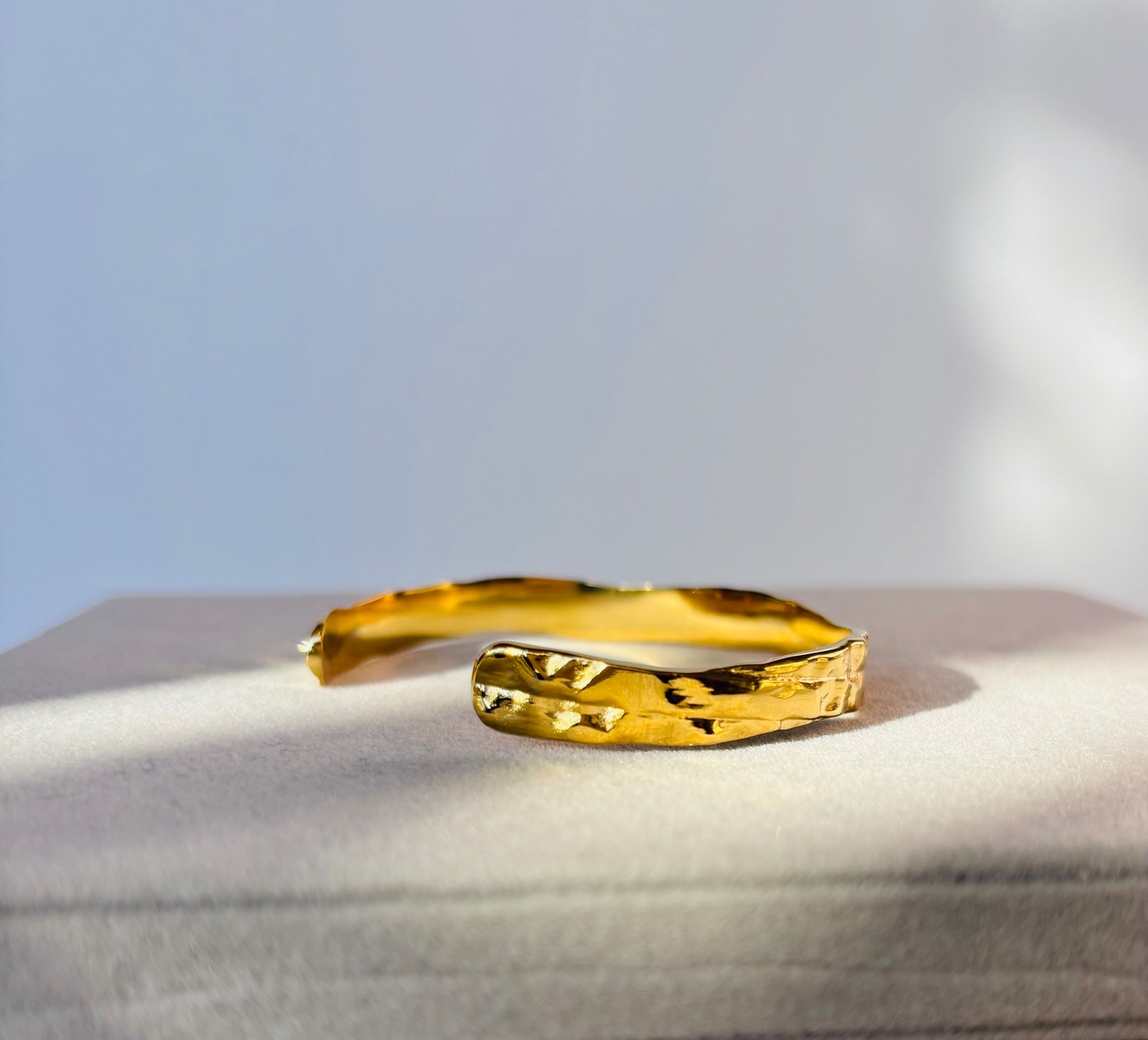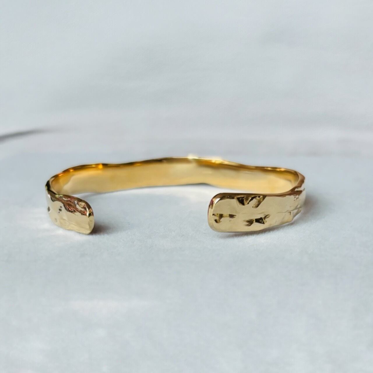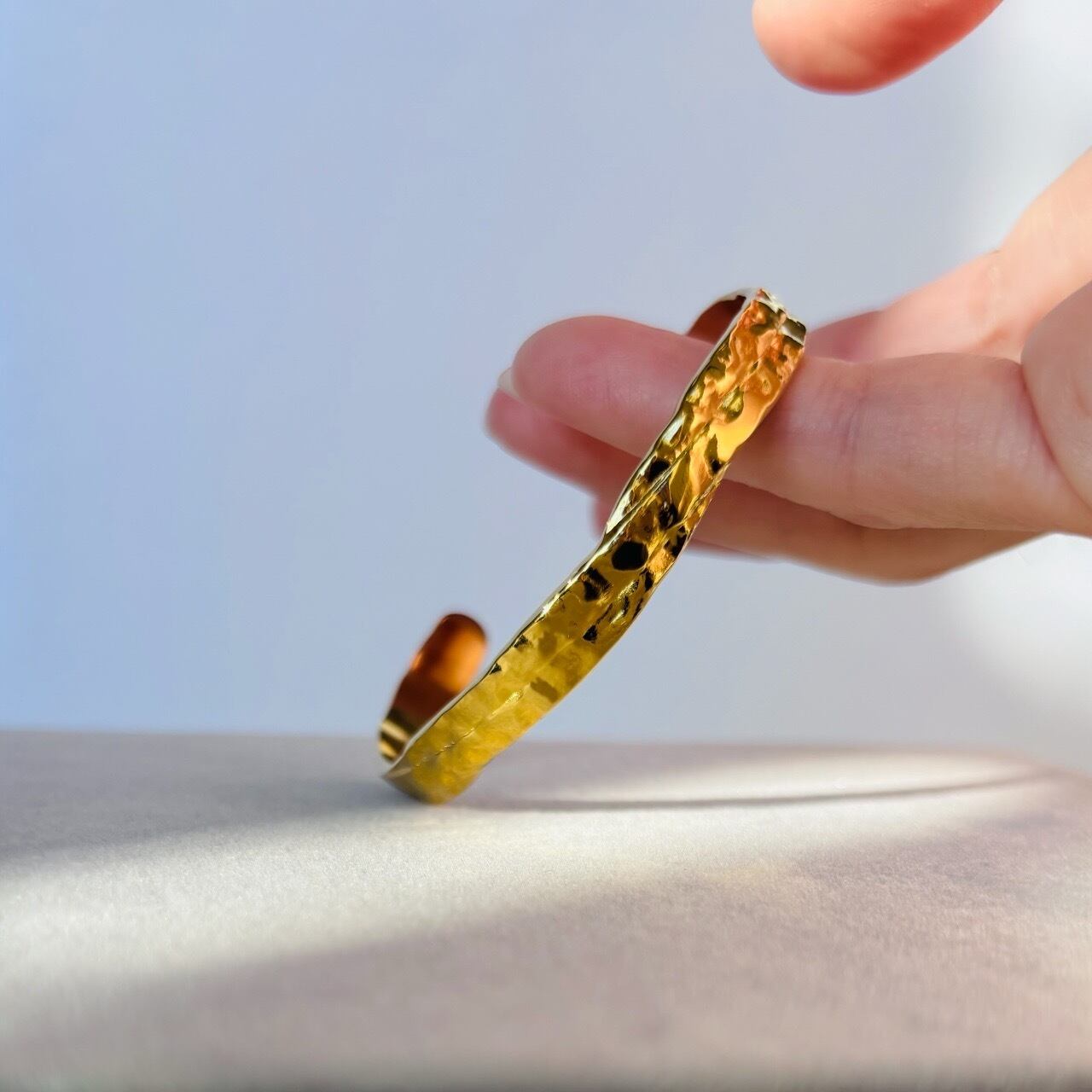 繊細なテクスチャーが美しい、ゴールドカラーのバングル。