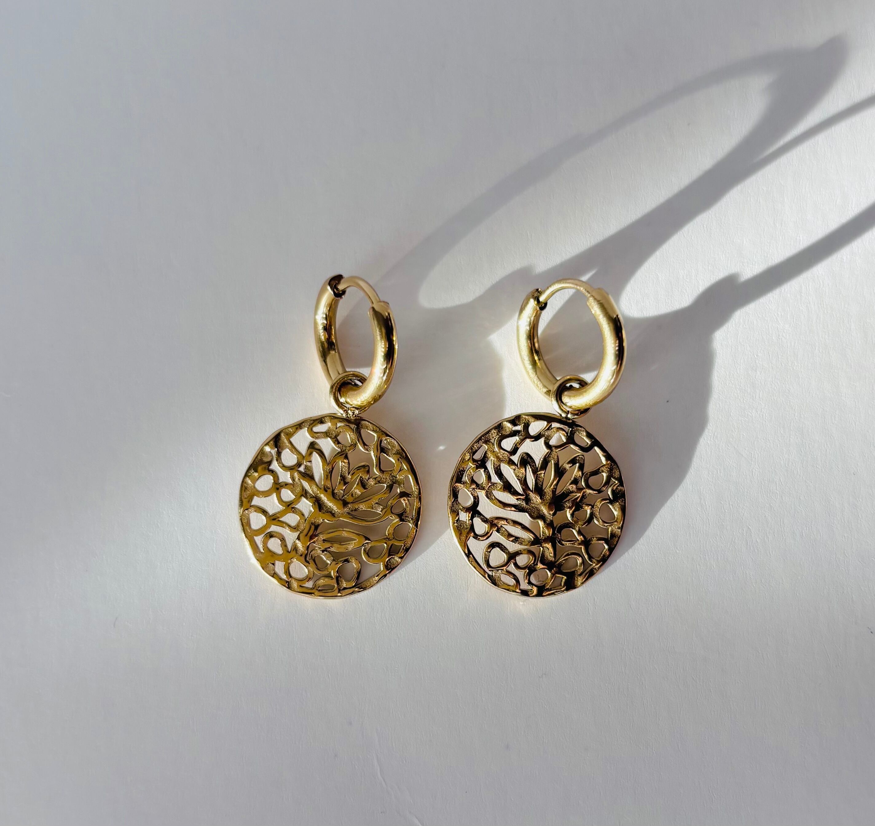 生命の樹をモチーフにした、繊細な線でカットアウトされた丸いモチーフ。