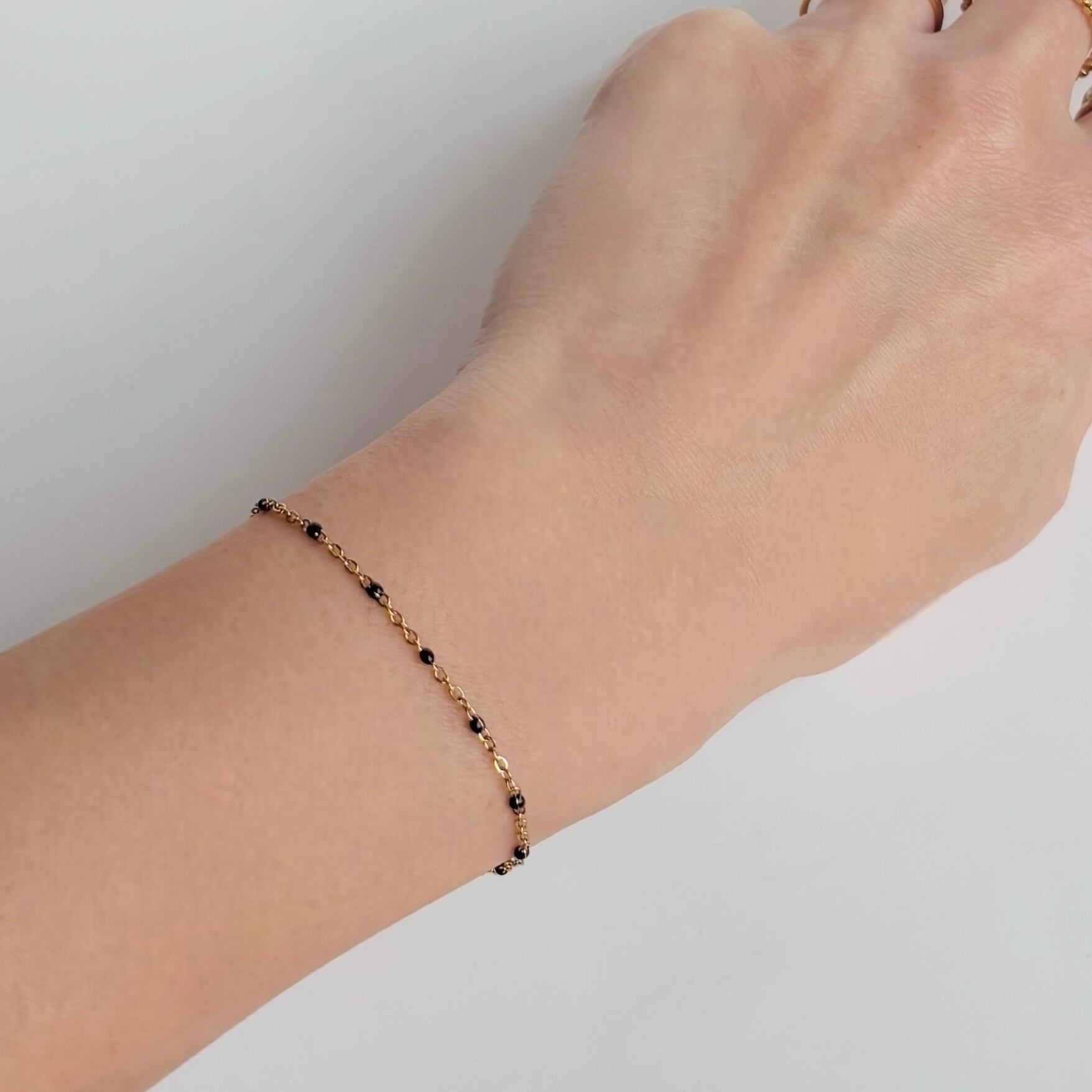 華奢なゴールドチェーンに黒が映える、上品なブレスレット。