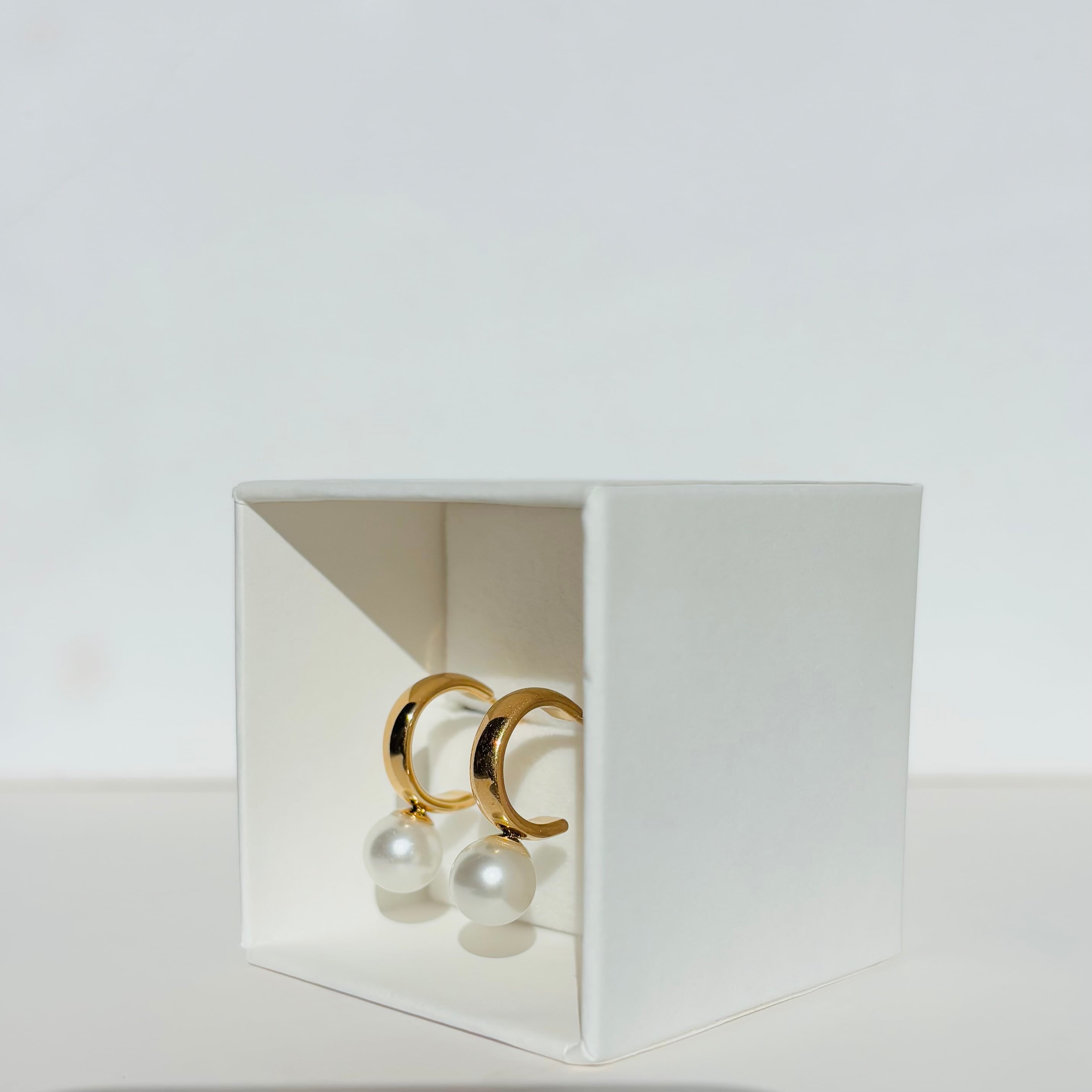 フープの下に添えられた一粒のパールが、上品なアクセントをプラスします。