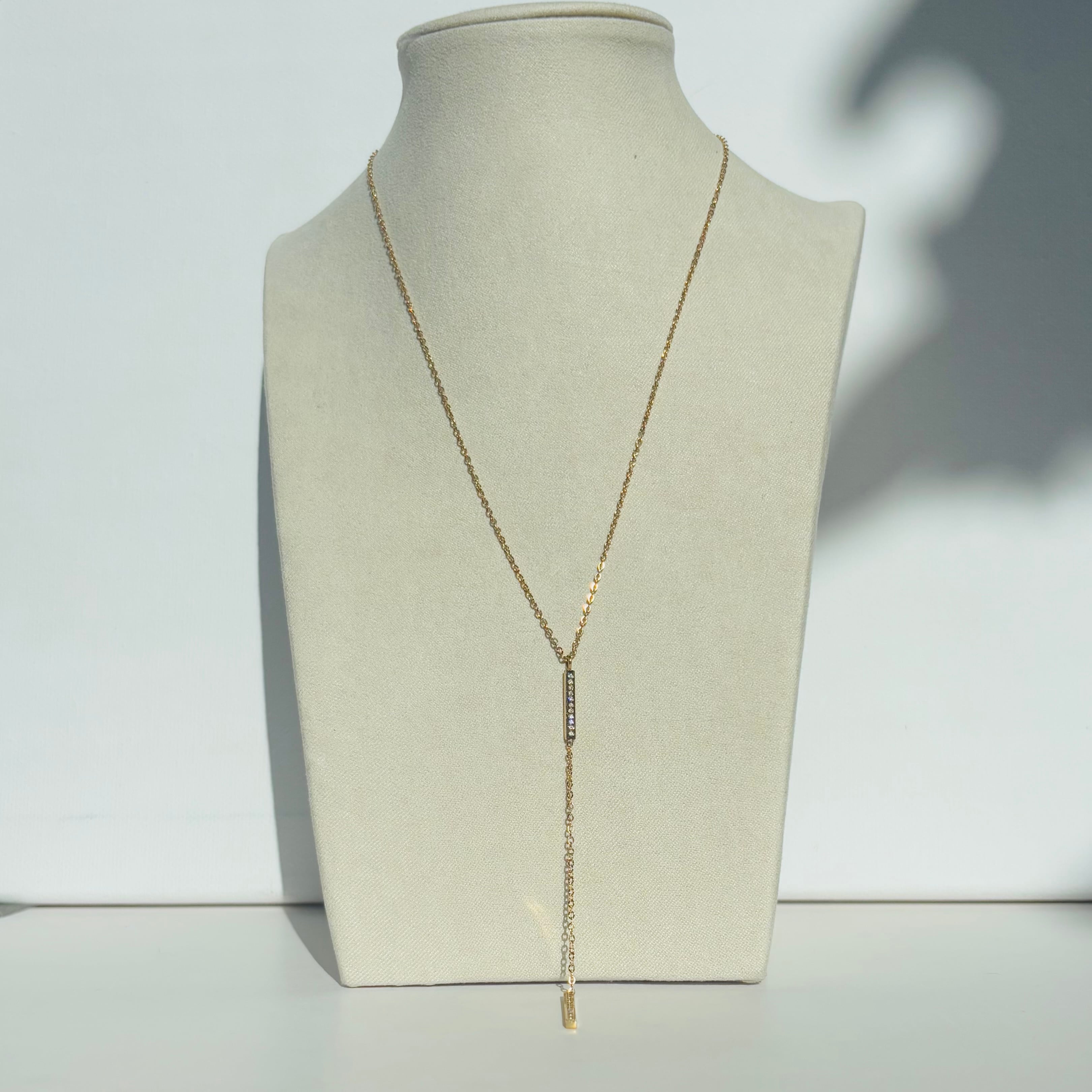 華奢なY字ネックレス、ジルコニアが煌めく上品なデザイン。